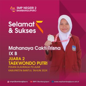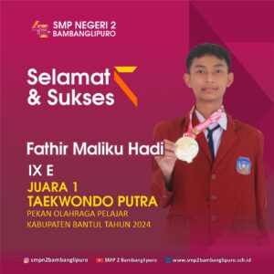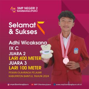 Medali emas diperoleh oleh siswa kelas 9 E atas nama Fathir Maliku Hadi dari cabang taekwondo putra under 46 kg. Sementara medali perak diperoleh dari cabang taekwondo putri under 46 kg atas nama Mahanaya Cakti Trisna (9B) dan dari cabang atletik lari 400 meter putra atas nama Adhi Wicaksana (9C). Sementara dua medali perunggu diperoleh dari cabang Basket Putra dan cabang atletik lari 100 meter putra atas nama Adhi Wicaksana (9C).
